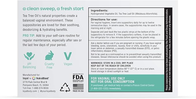 Amazon Com Loyal Tea Tree Oil Suppository Melts Supports Odor Control Soothes Discomfort Promotes Healthy Ph Hydrates Flora 12 Count Health Household